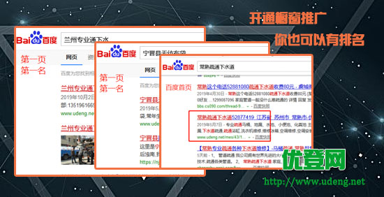 免费的推广有百度排名的时间不确定,和广告出现在优登网首页“收录位”的机会有关系,